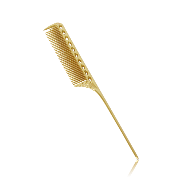 A strip gold metal with a row of medium teeth, elegant golden tone with great heat resistance and long-lasting qualities. Could be used for untangling your hair or to divide it evenly while blow drying or styling it. Gentle on the scalp & helps to stimulate the blood circulation with its metallic teeth, could be placed in small hand purse!